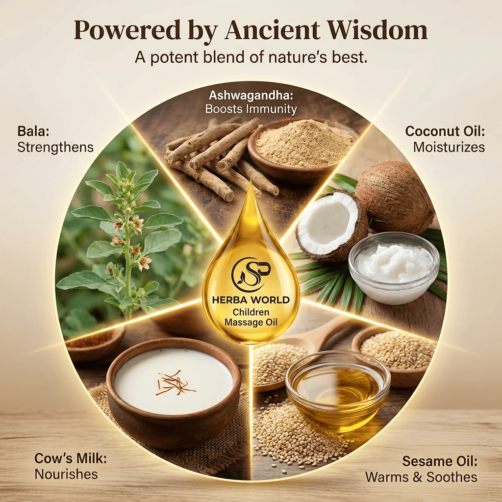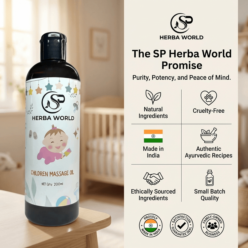 SP Herba World Children Massage Oil (200ml) is a gentle, nourishing herbal oil specially crafted for kids’ delicate skin. Enriched with plant-based oils, it helps keep skin soft, smooth, and naturally moisturized. Lightweight and easy to absorb, it is ideal for daily baby massage and regular body care routines.