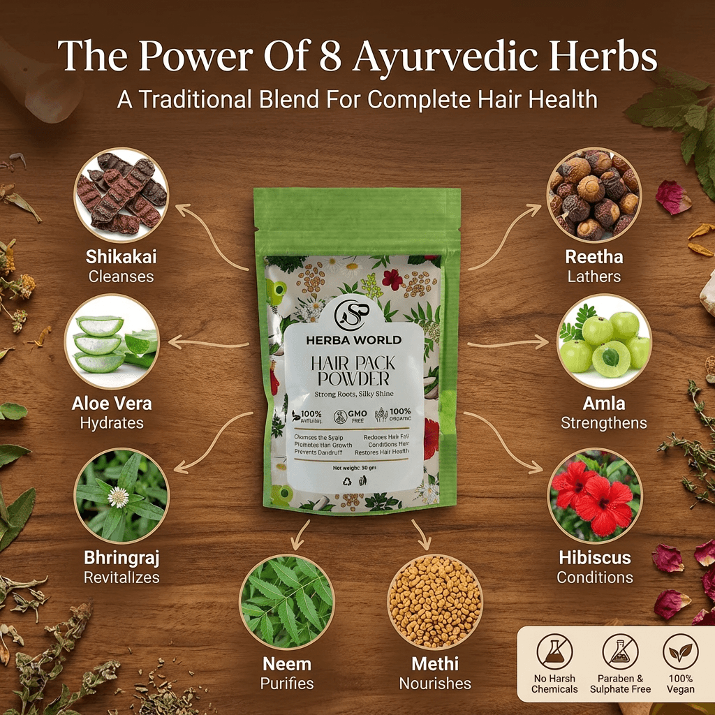 At SP Herba World, we blend traditional herbal knowledge with modern hair care needs. This hair pack powder is designed to enhance your regular hair care routine by leaving hair feeling clean, smooth, and naturally vibrant.