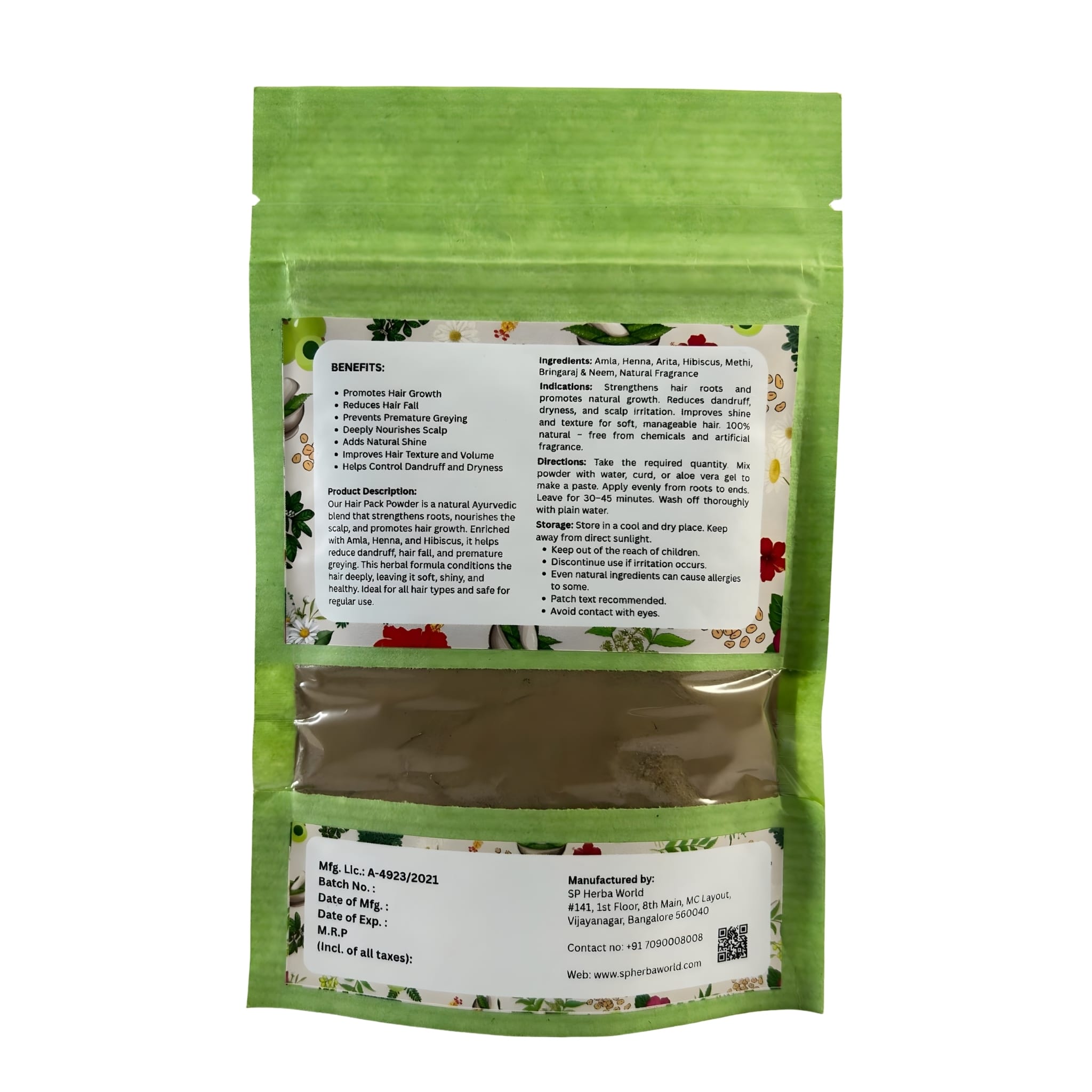 SP Herba World Hair Pack Powder 50gm packetHerbal Hair Pack Powder – 50g