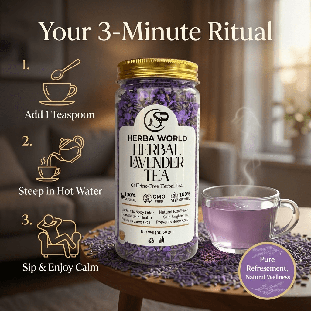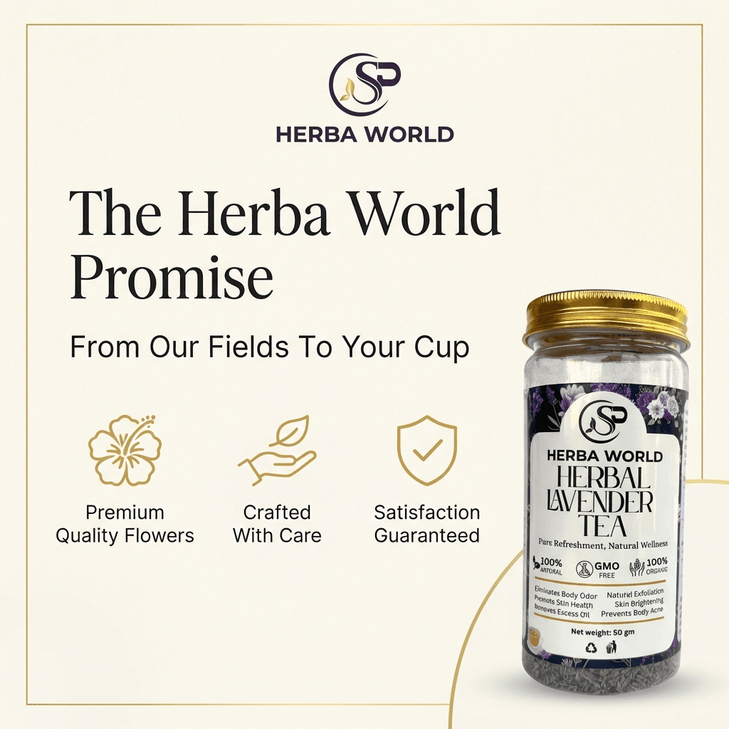 Unwind with the calming aroma of SP Herba World Herbal Lavender Tea, a premium floral infusion crafted from carefully dried lavender buds. Naturally caffeine-free and beautifully aromatic, this herbal tea offers a soothing and refreshing experience perfect for any time of the day.