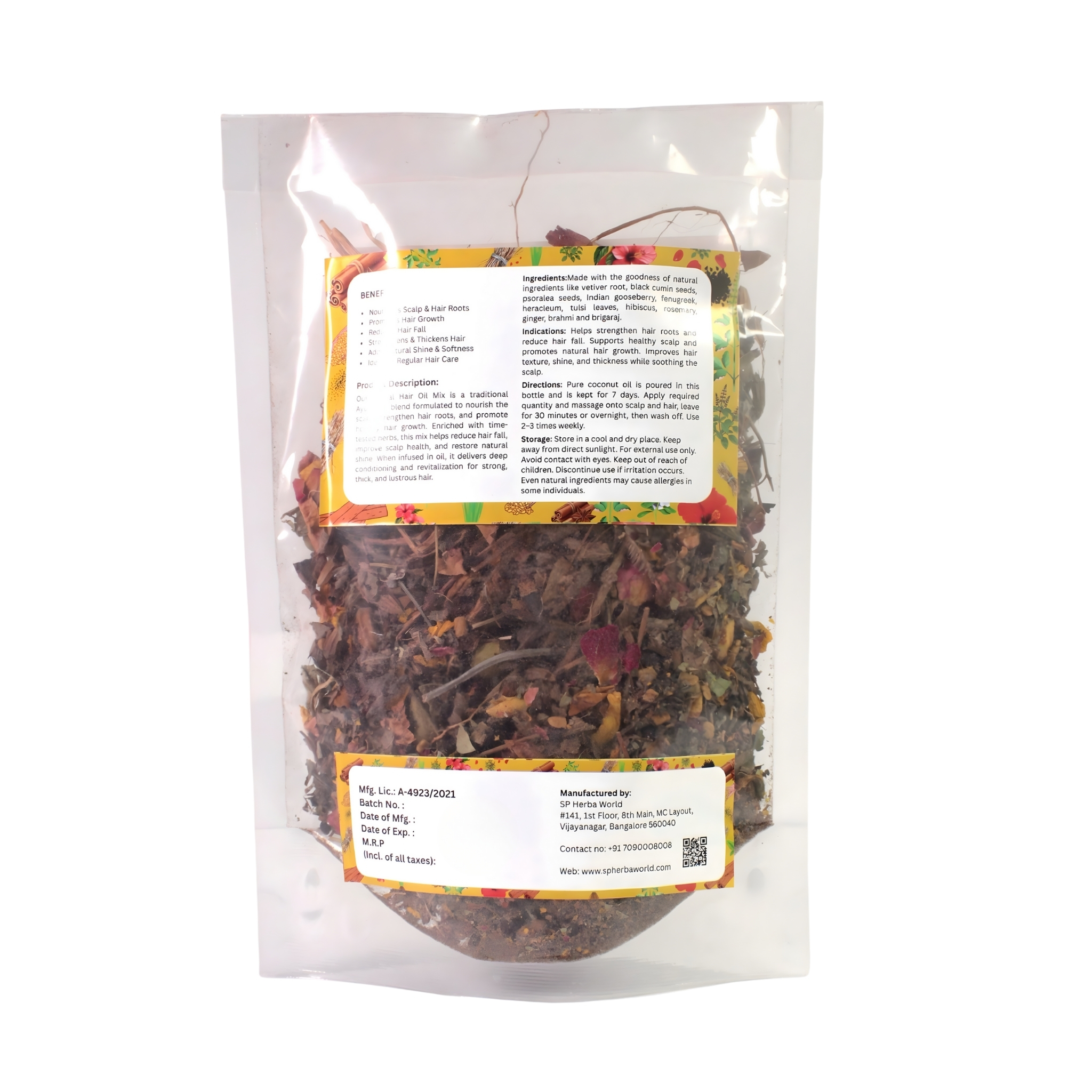 & Free ShippingSP Herba World Herbal Hair Oil Mix is a traditional blend of herbs intended to be infused in coconut or sesame oil. Regular scalp massage with prepared oil helps nourish the scalp and improve overall hair texture.