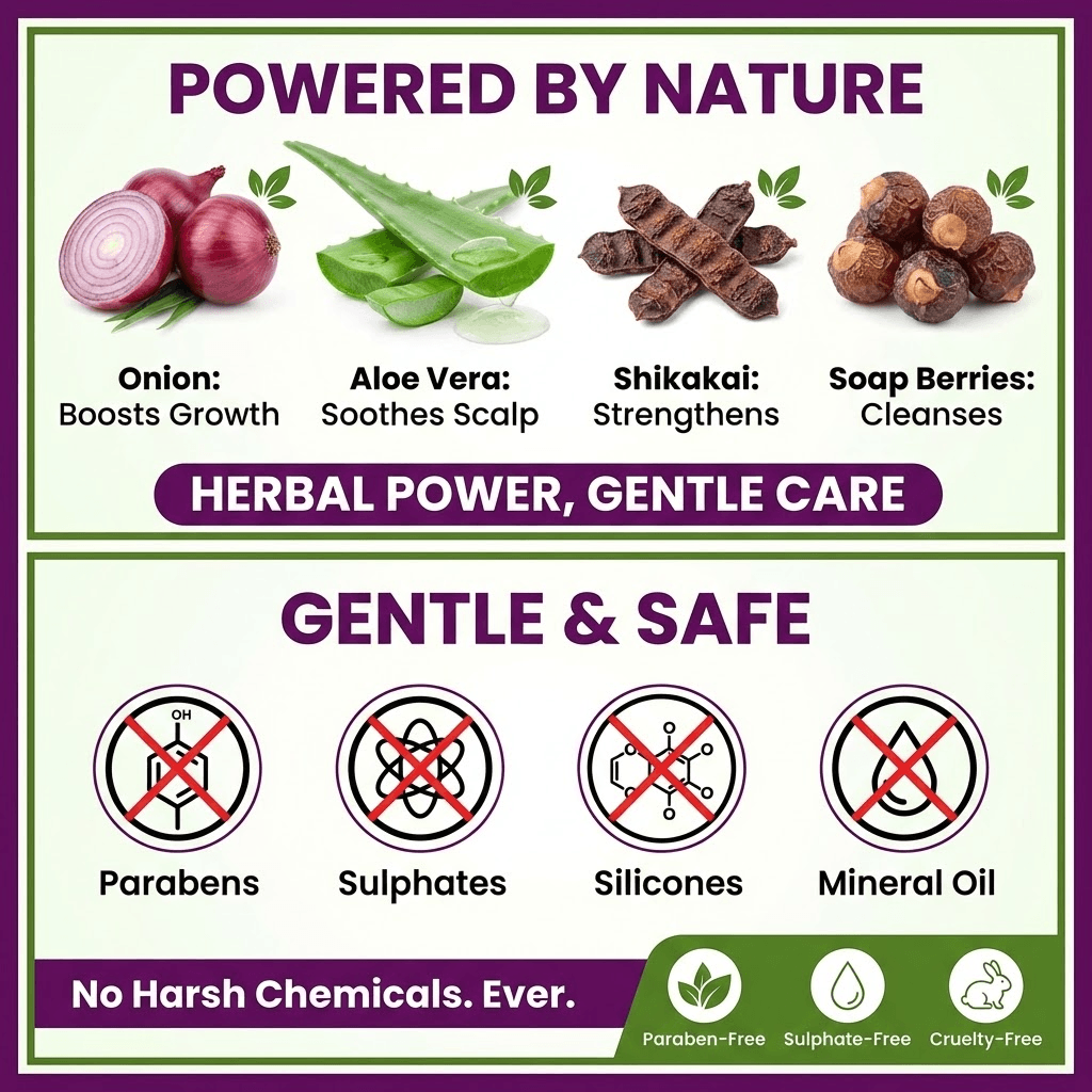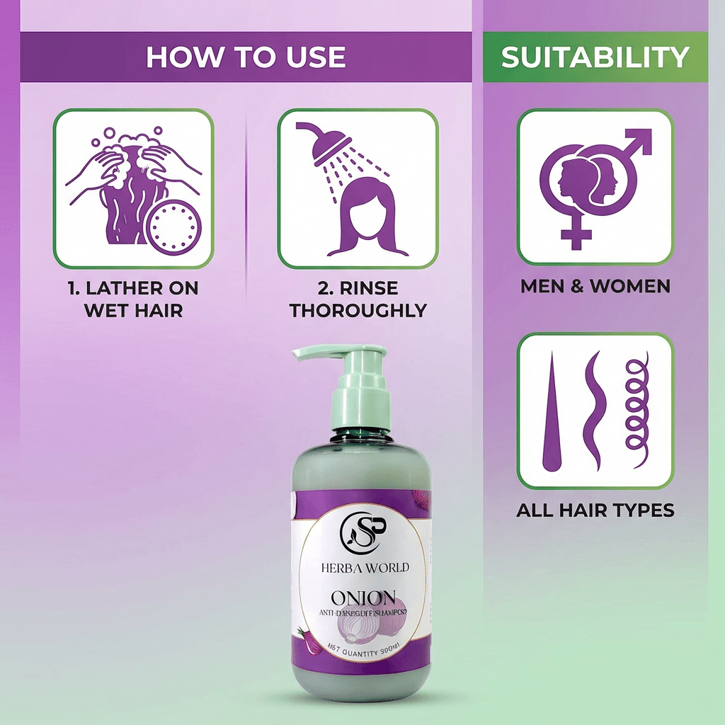 At SP Herba World, we create nature-inspired hair care solutions designed for modern lifestyles. This onion-based shampoo is ideal for: