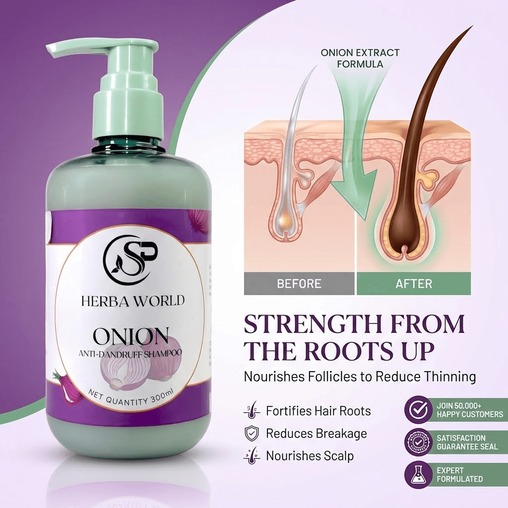 Rooted in the principles of traditional herbal care, SP Herba World brings you Onion Shampoo, a gentle cleansing formulation designed for daily hair care. Enriched with onion and herbal extracts, this shampoo supports scalp health and hair strength.